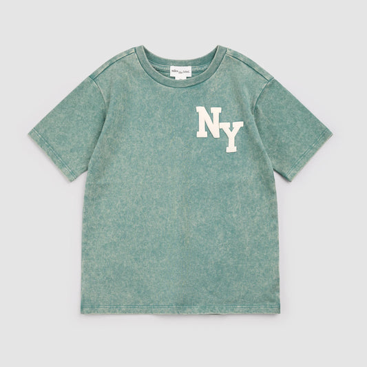 NYC Puff Print on Green Acid Wash T-Shirt