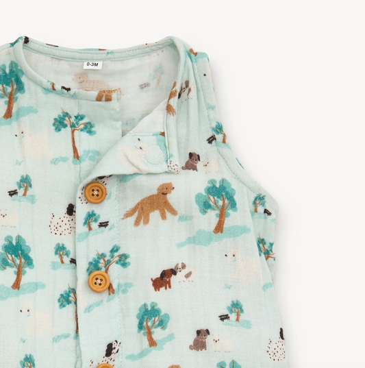 central bark cotton gauze magnetic sleeveless romper
