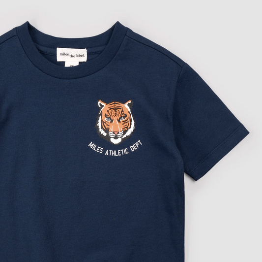 Miles Tiger Print on Dress Blue T-ShirtRegular price $30.00 USDRegular priceUnit price / per-