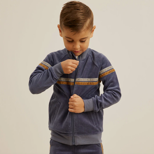 Retro Stripe on Miles Blue Velour Track JacketRegular price $44.00 USDRegular priceUnit price / per-