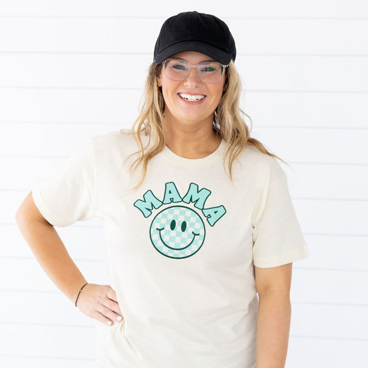 MAMA Smiley Checkered Adult Short Sleeve Tee