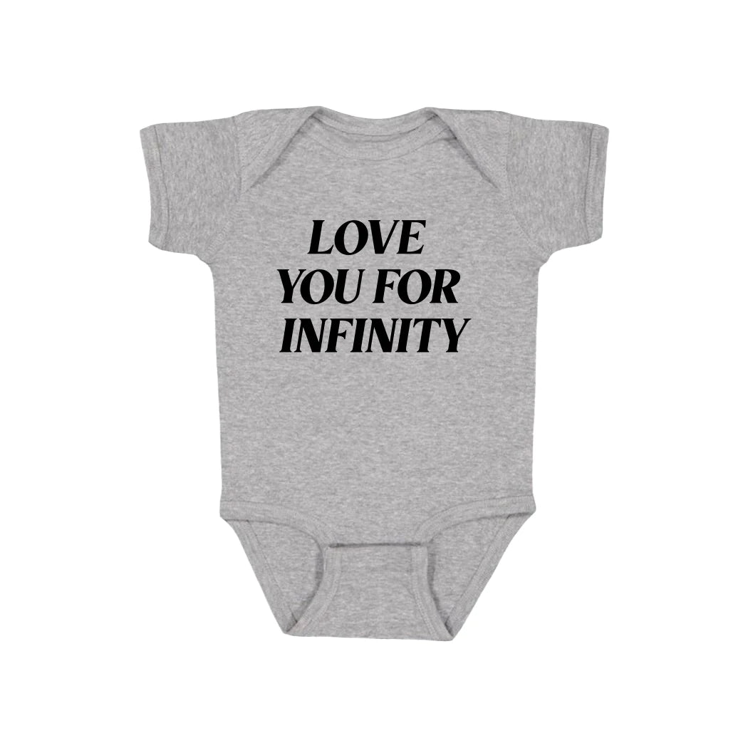 "love you for infinity"! the perfect onesie to celebrate a new arrival that is sure to be loved for infinity!