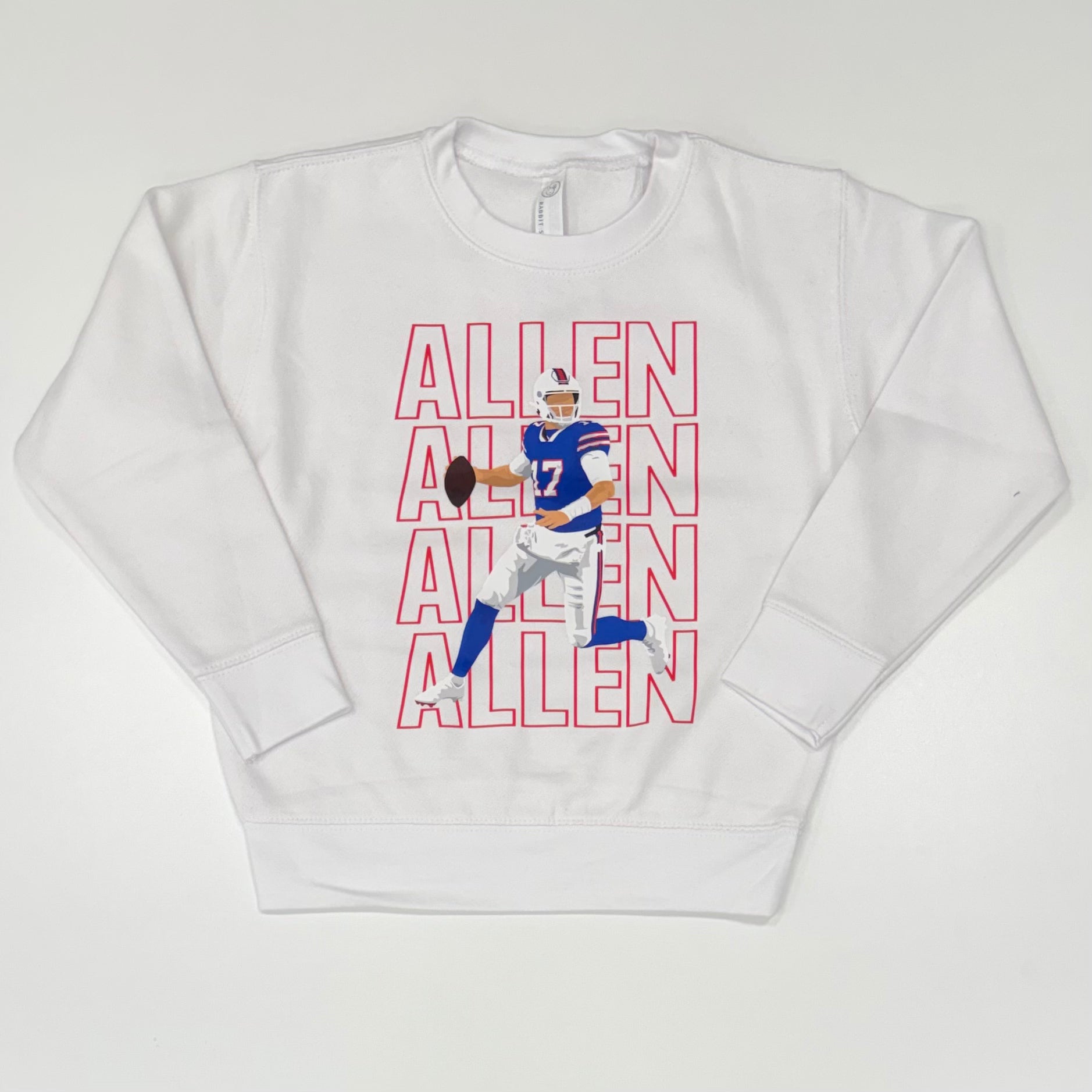 MVP!! a white sweatshirt with an Allen graphic to celebrate the bills MVP! super soft fleece