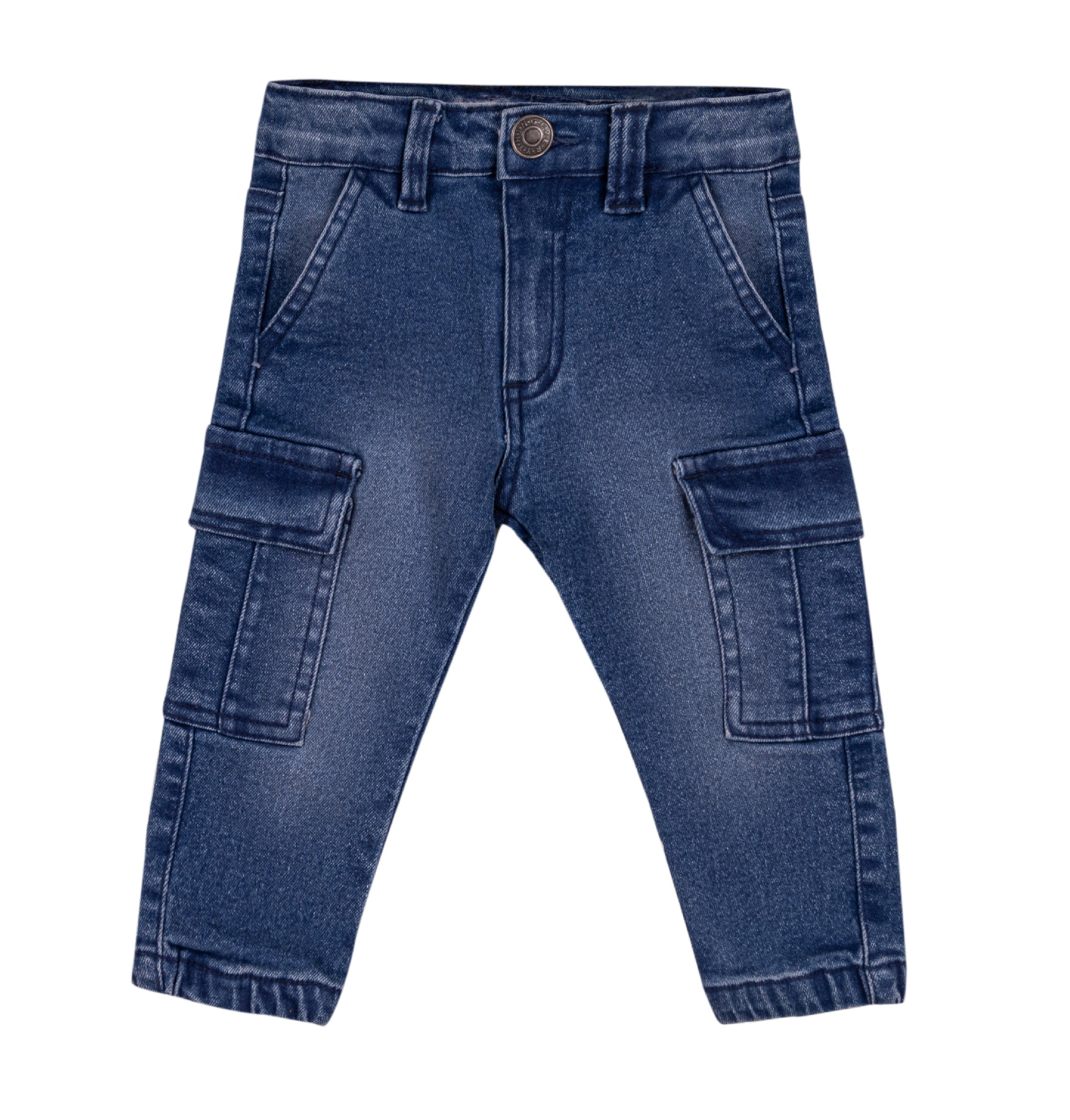 the jean of the season in baby sizes! adorable dark blue stretch denim cargo pant that is super soft & easy to pull on & off for changing
