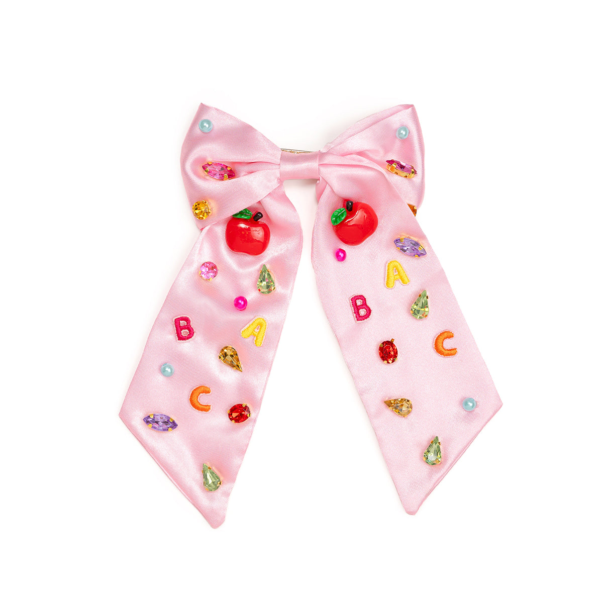 the cutest bow ever!! adorable satin big bow ribbon bow with back to school gemstones to shine in the new school year!
