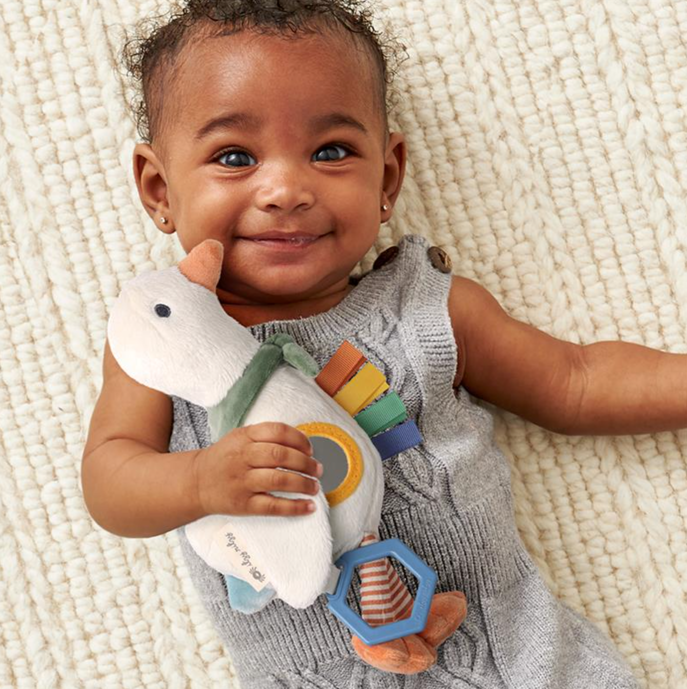 everything sensory! the perfect toy to keep your little one busy by either attaching to a car seat, lose in their hands, or simply just an interactive toy!