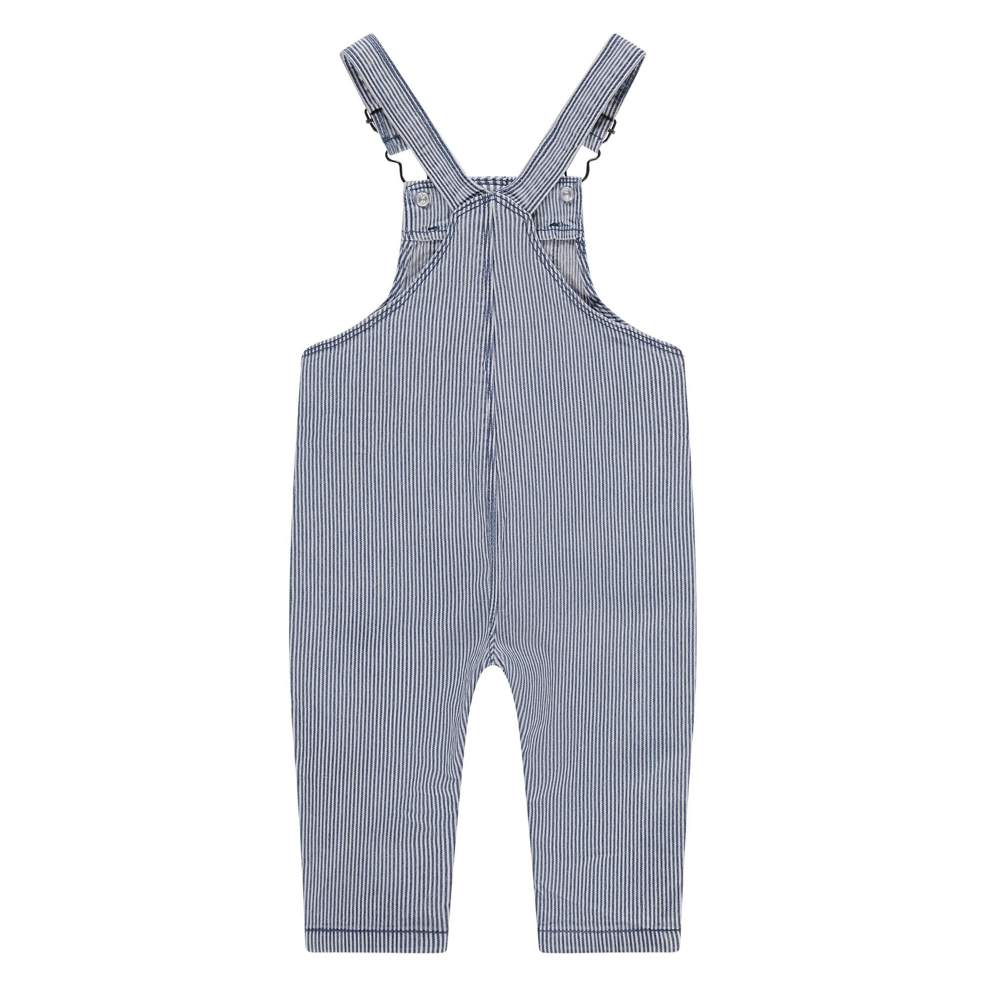 white & blue stripe denim - adorable must have! lightweight stretch denim overall that is great for a new baby outfit