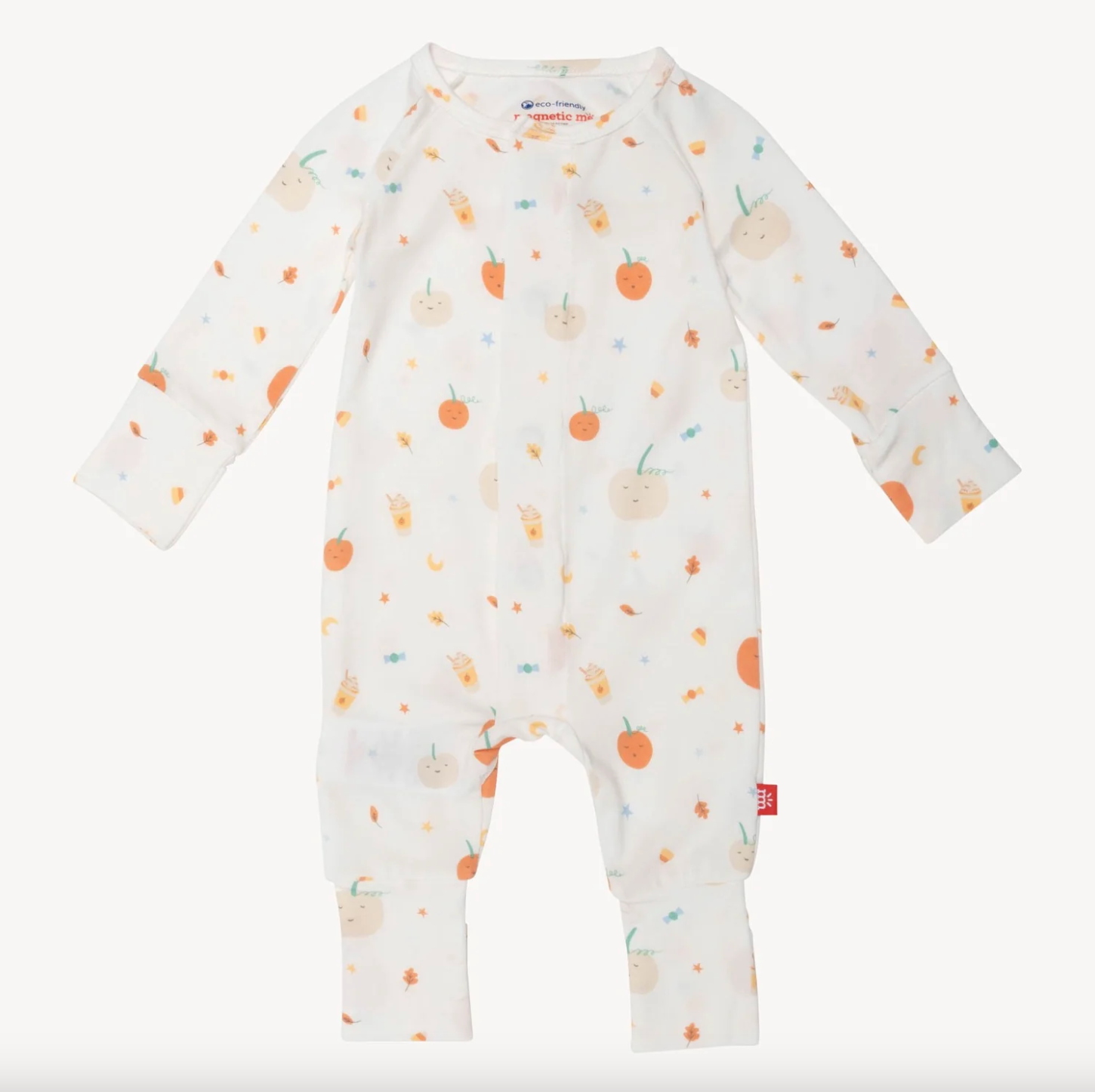pumpkin season has arrived & this print is the perfect option to celebrate! your favorite footie with magnetic closures is the best option!