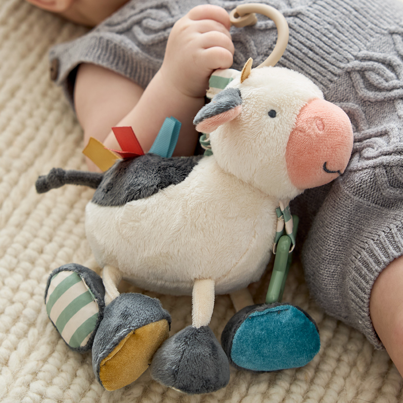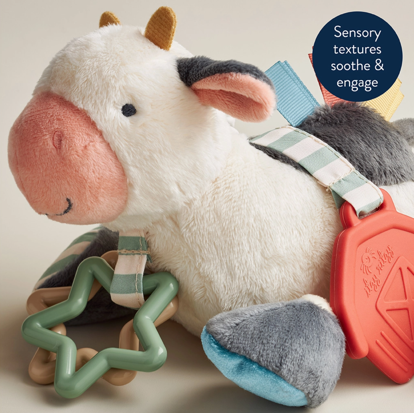 Cuddle, Play & Learn! Instant good vibes and beloved memories await with your baby’s new bestie - the Link & Love™! From the gentle chime sound and clinking rings to the various textures and ribbons, these developmental play features are sure to engage and inspire your sweetie.