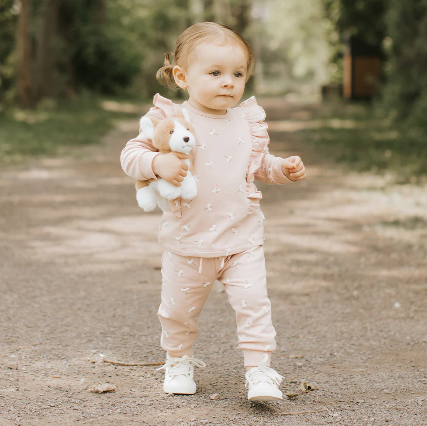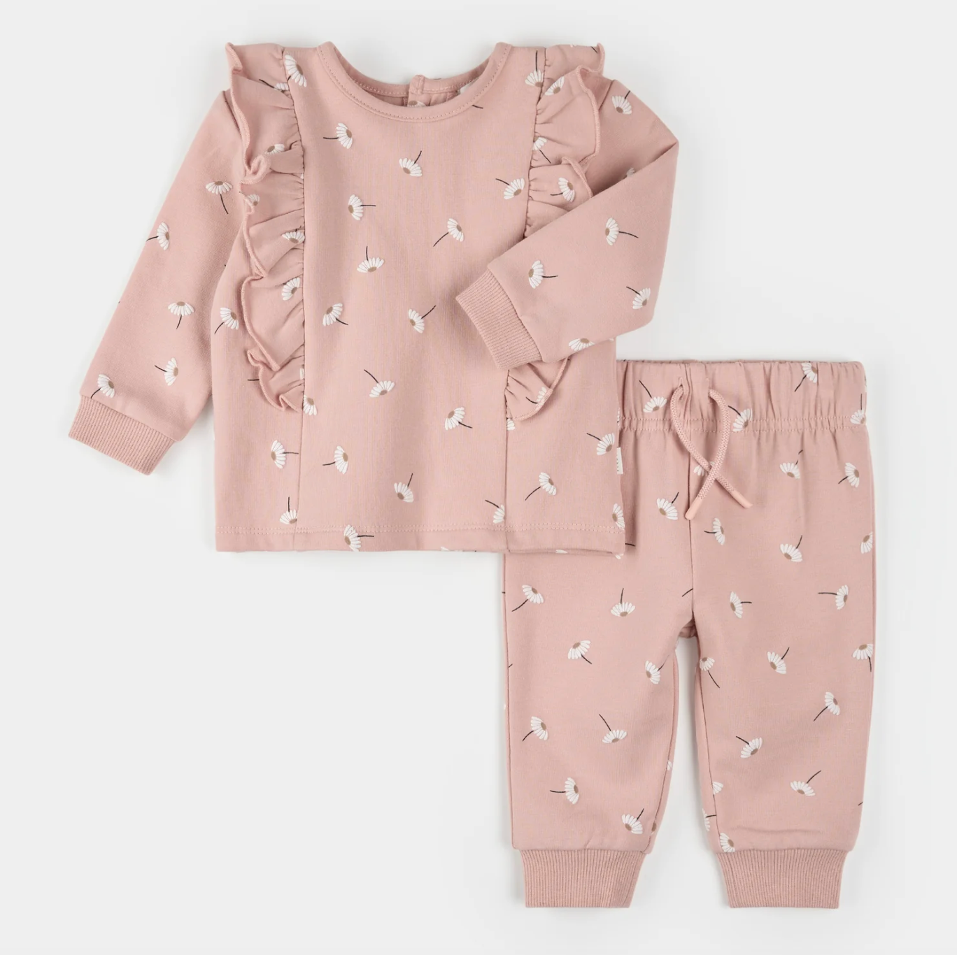 pink, flowers, & ruffles! all the girly loves that make this adorable 2 piece set! a must have for a new arrival & the perfect option for gifting