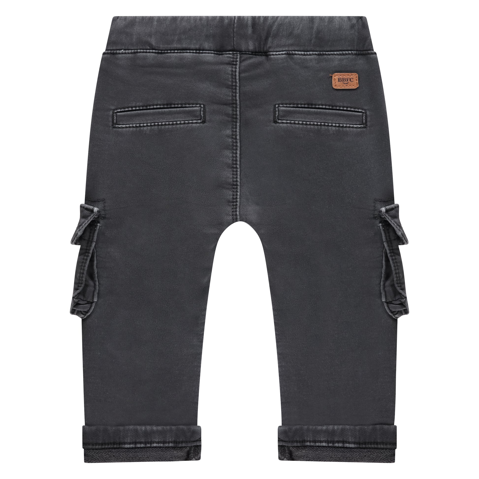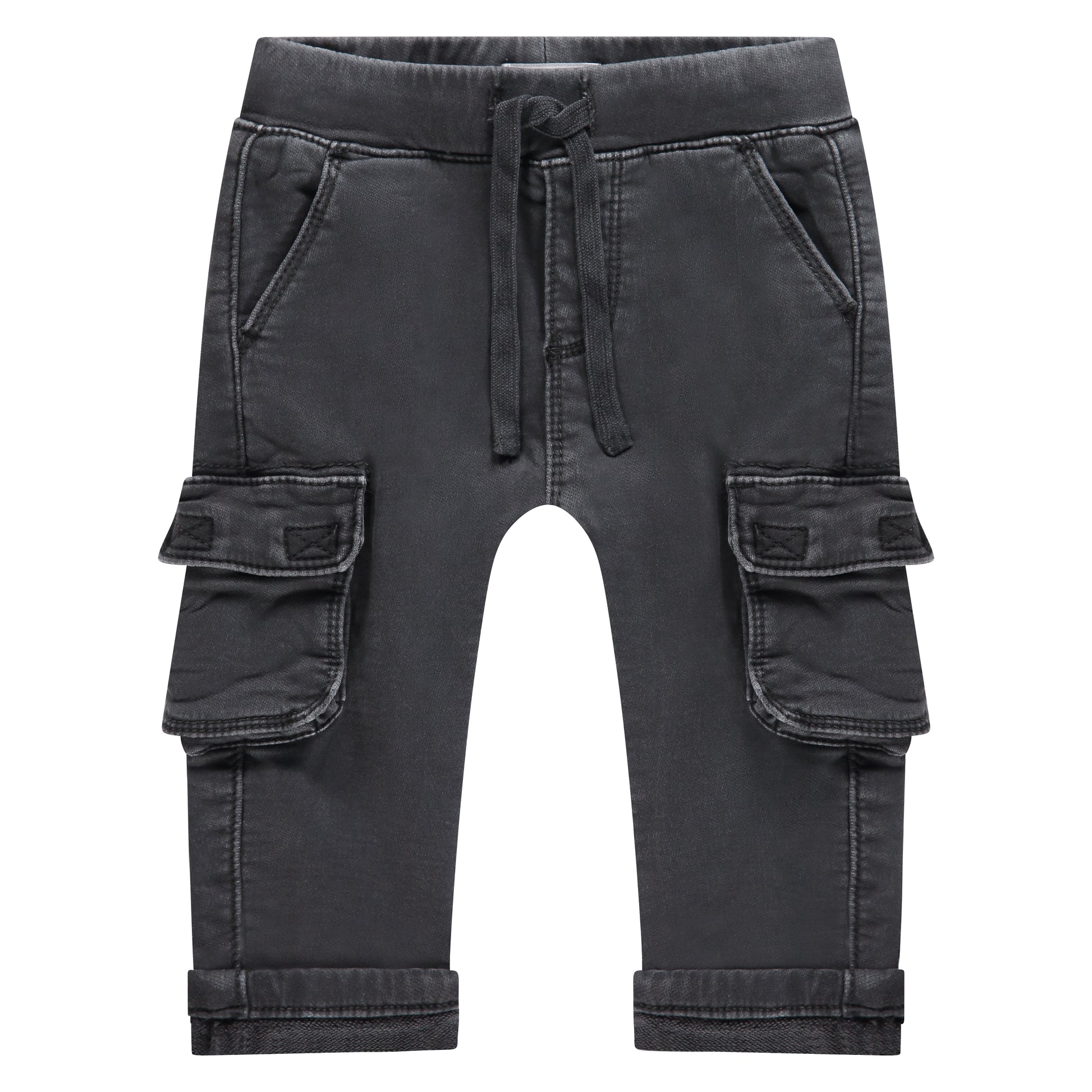baby fall essential! dark grey cargo denim that is great for every day wear! super soft & stretchy with an elastic waistband for easy on & off