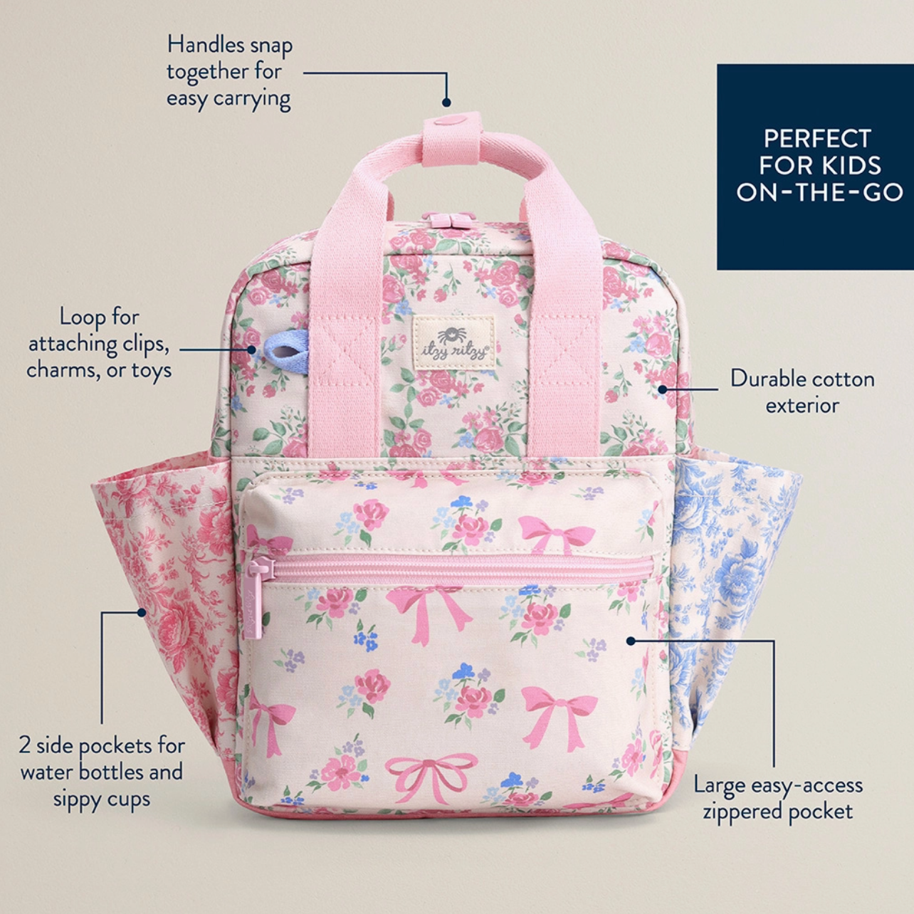 Adventure awaits! Mini size for itzy trips! Lightweight & lovable, our Itzy Bitzy Bag is the perfect tagalong for trips around the block or around the globe! Your little one will travel in style with our adorable and functional backpacks, designed specifically for kids on-the-go. Encourage their independence with a backpack to call their own.