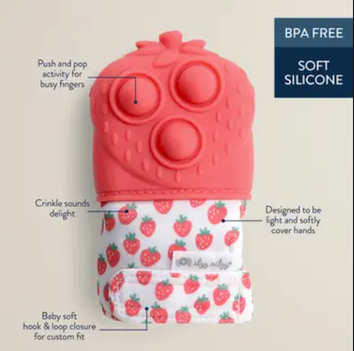 Chew on This! A teething mitt & sensory fidget in-one! Our Itzy Mitt Pop™ combines textures for teething and poppers to keep little hands busy.