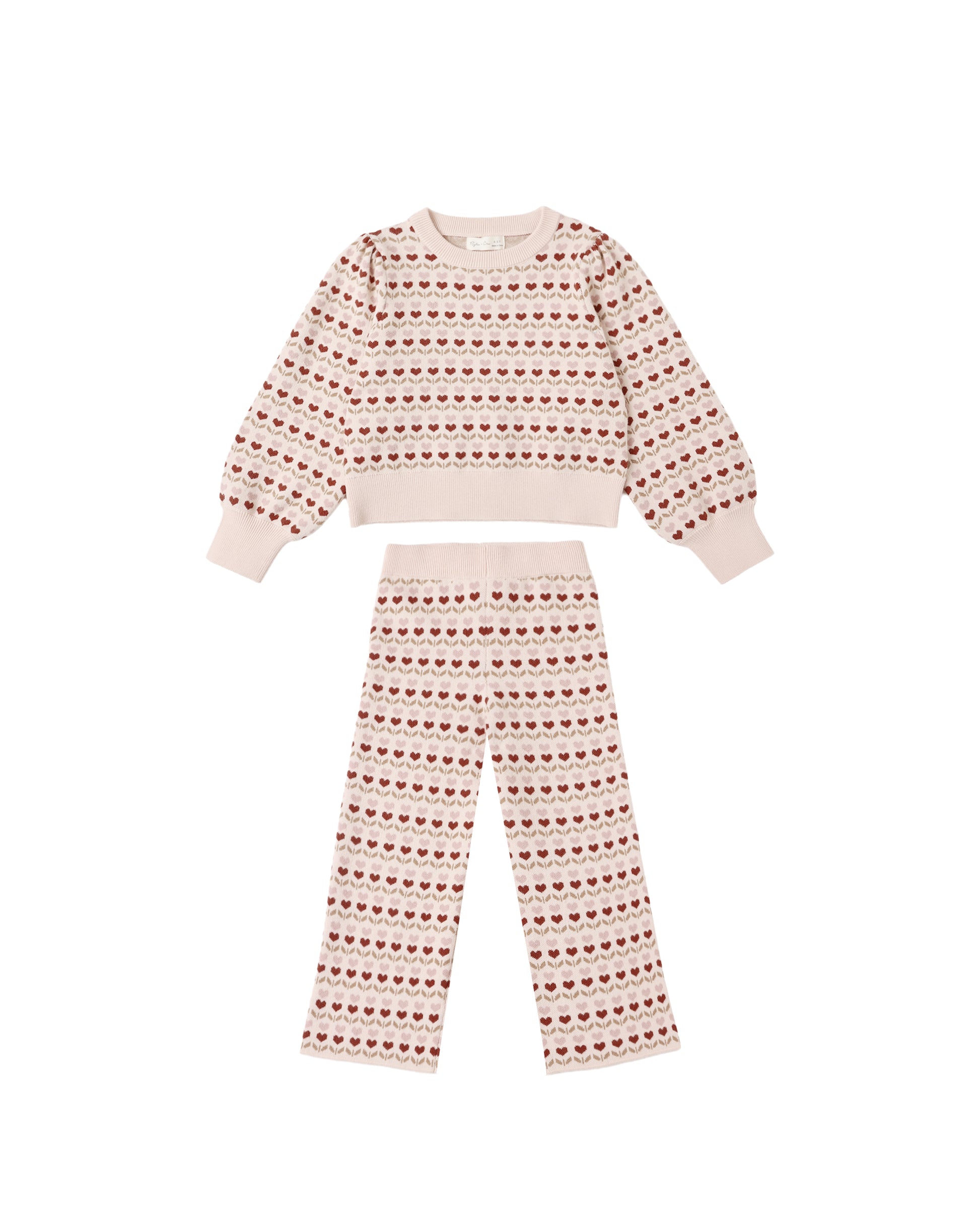 Our jacquard knit set includes a long sleeve top and cozy pants, perfect for everyday wear for this season!