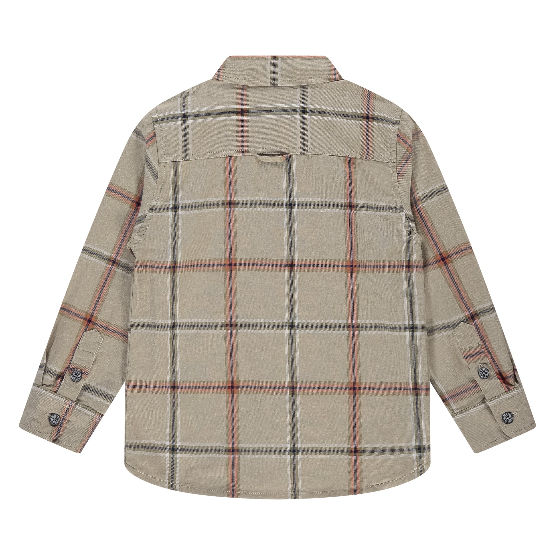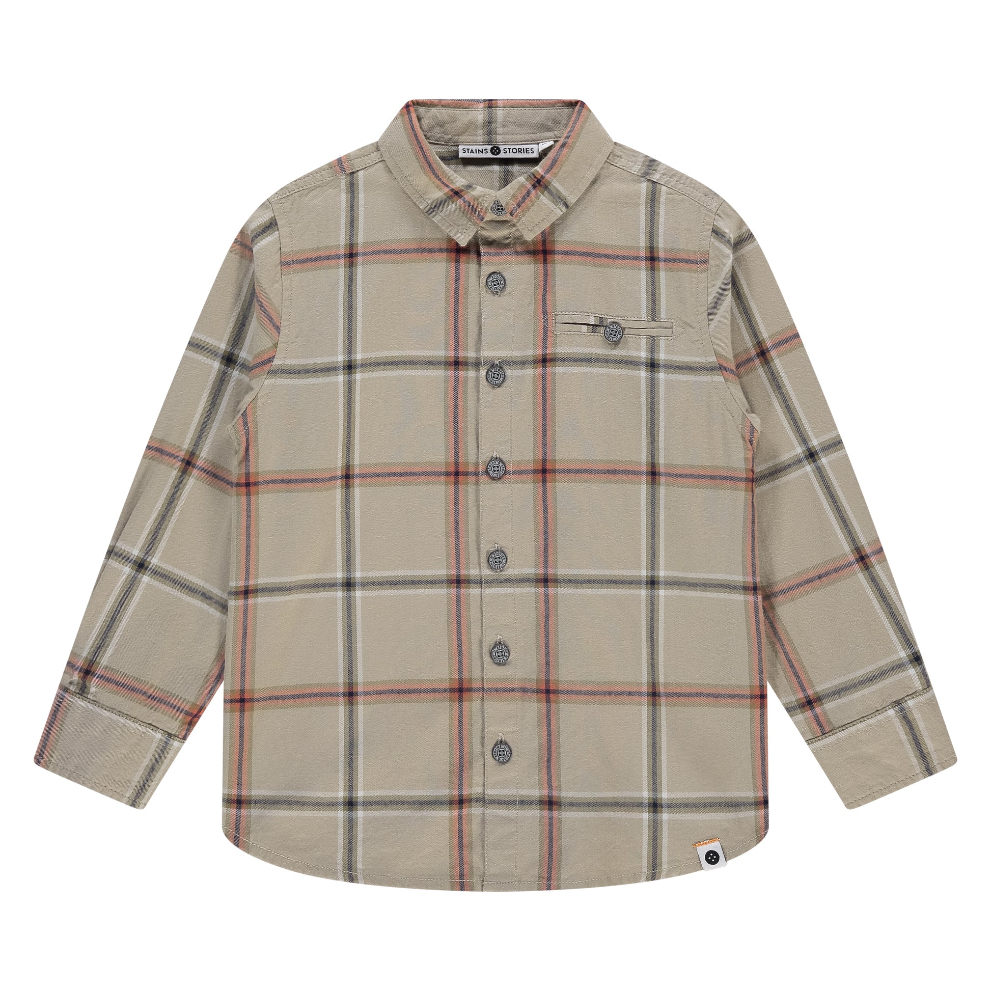 its flannel season! tan, orange & navy plaid button down shirt that is the perfect layering piece or shirt to dress up or dress down