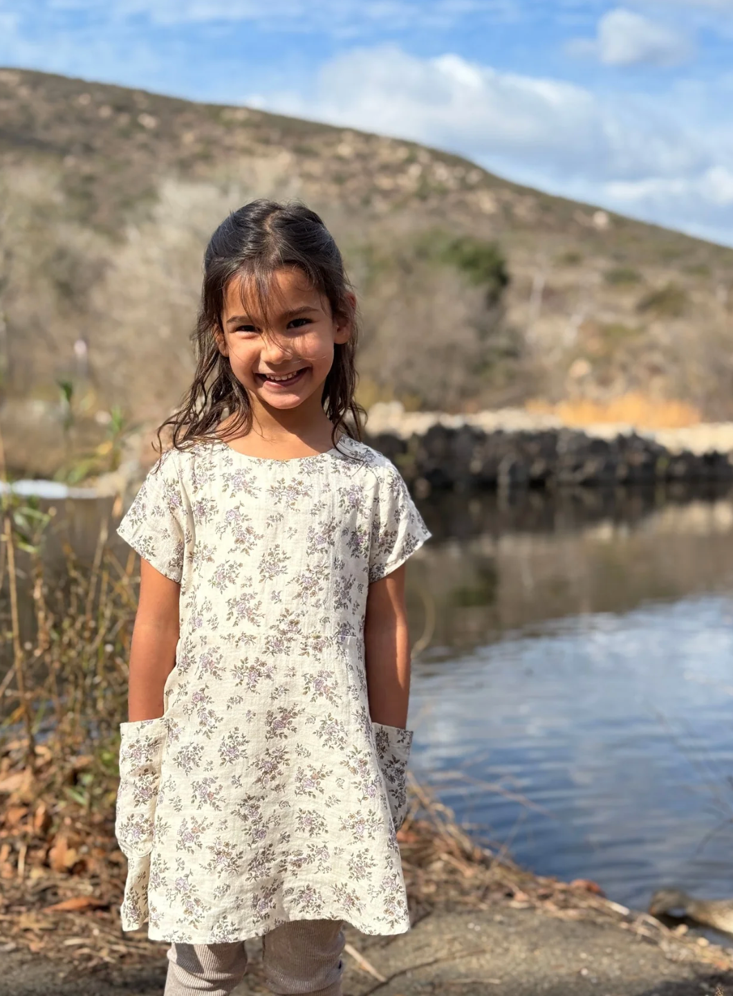 its floral season! purple & pink floral lightweight dress with big pockets! a great dress to layer with a cozy sweater!