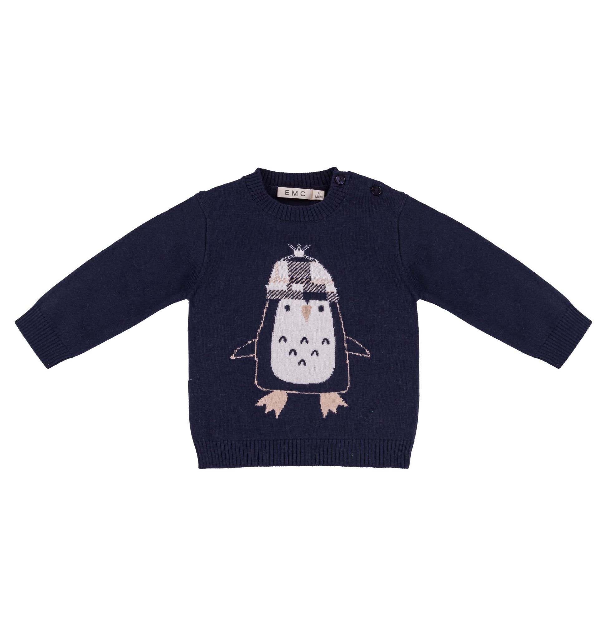 a little winter cutie! adorable navy sweater with the cutest little penguin applique. super cozy & perfect to wear with the blue cargo denim