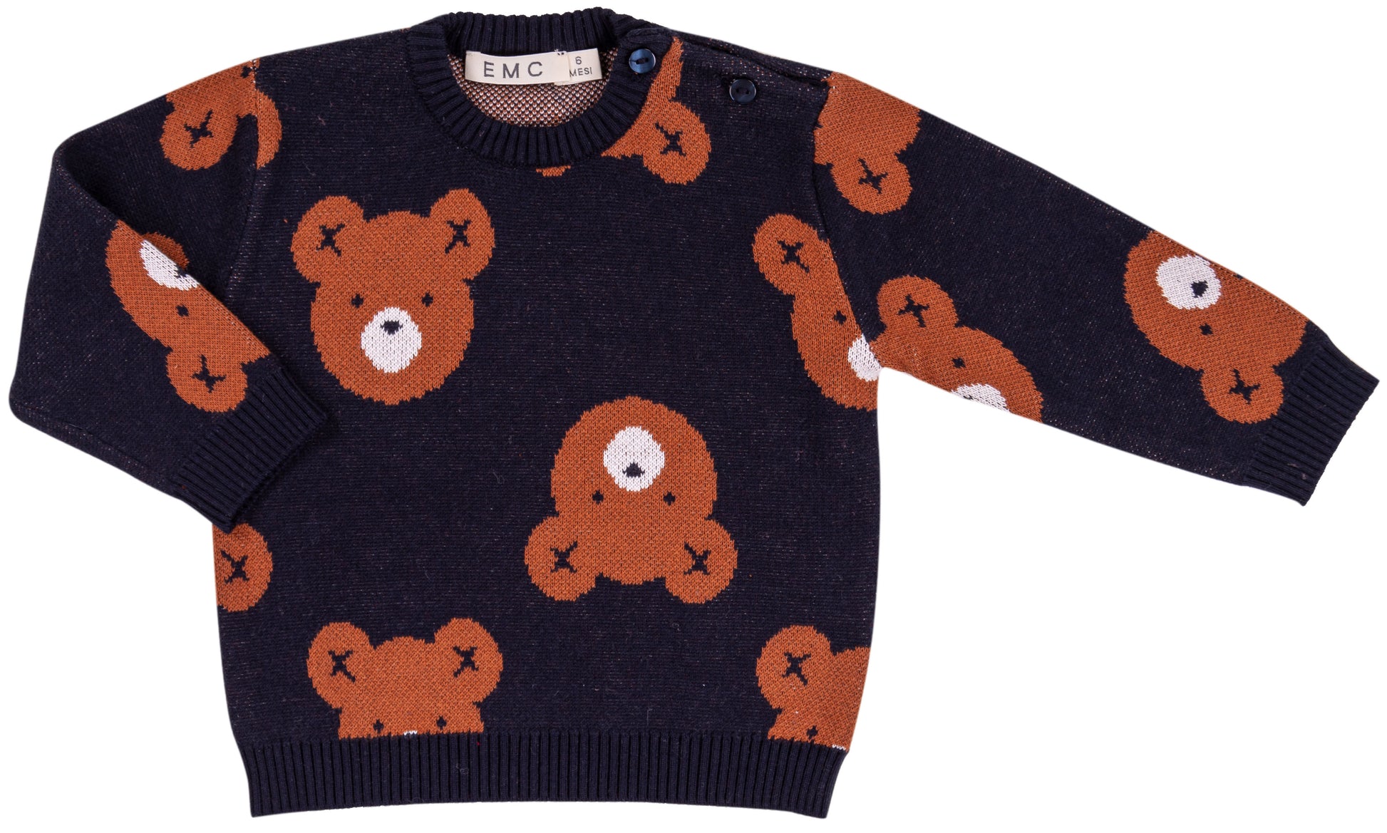 navy & dark tan teddy bear sweater that will be a love! a great gifting item that is a great gender neutral
