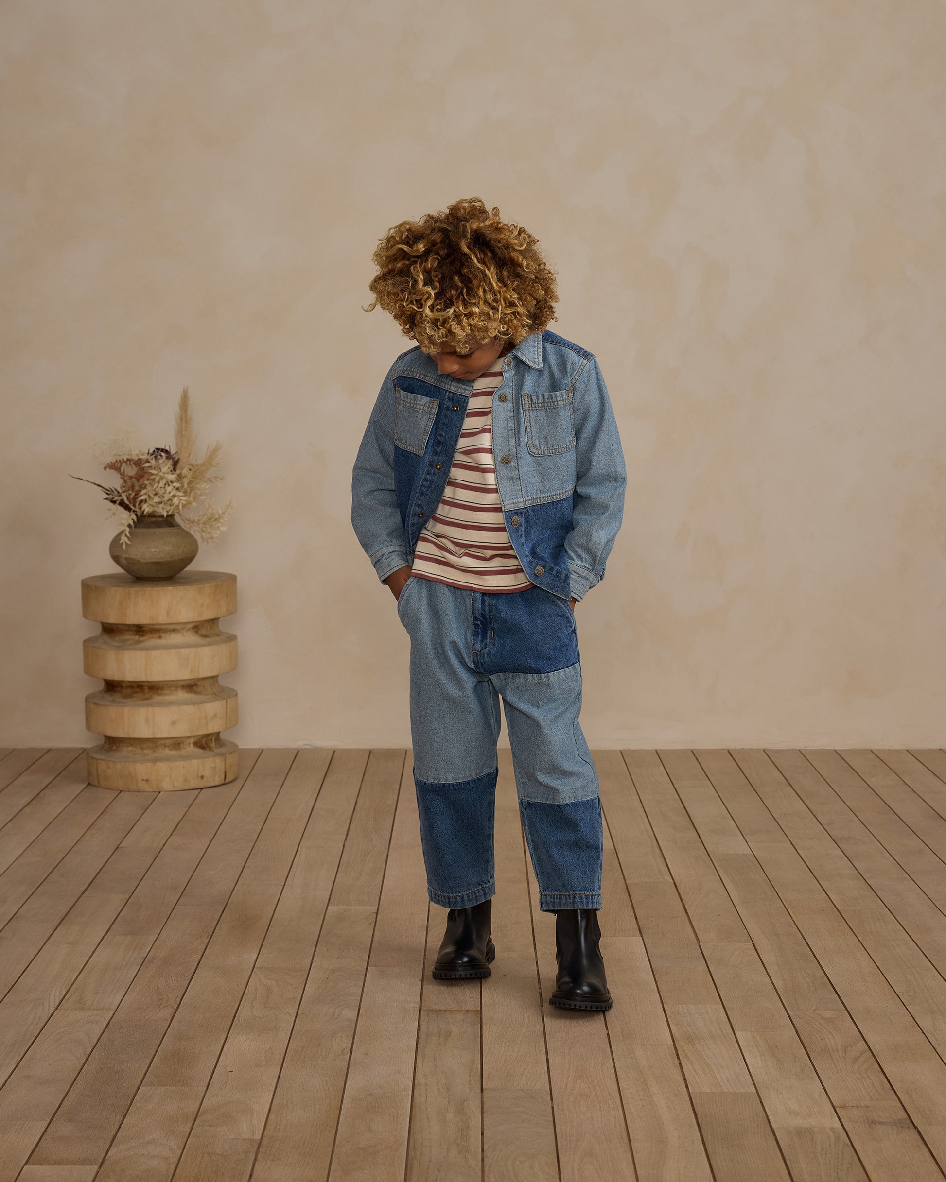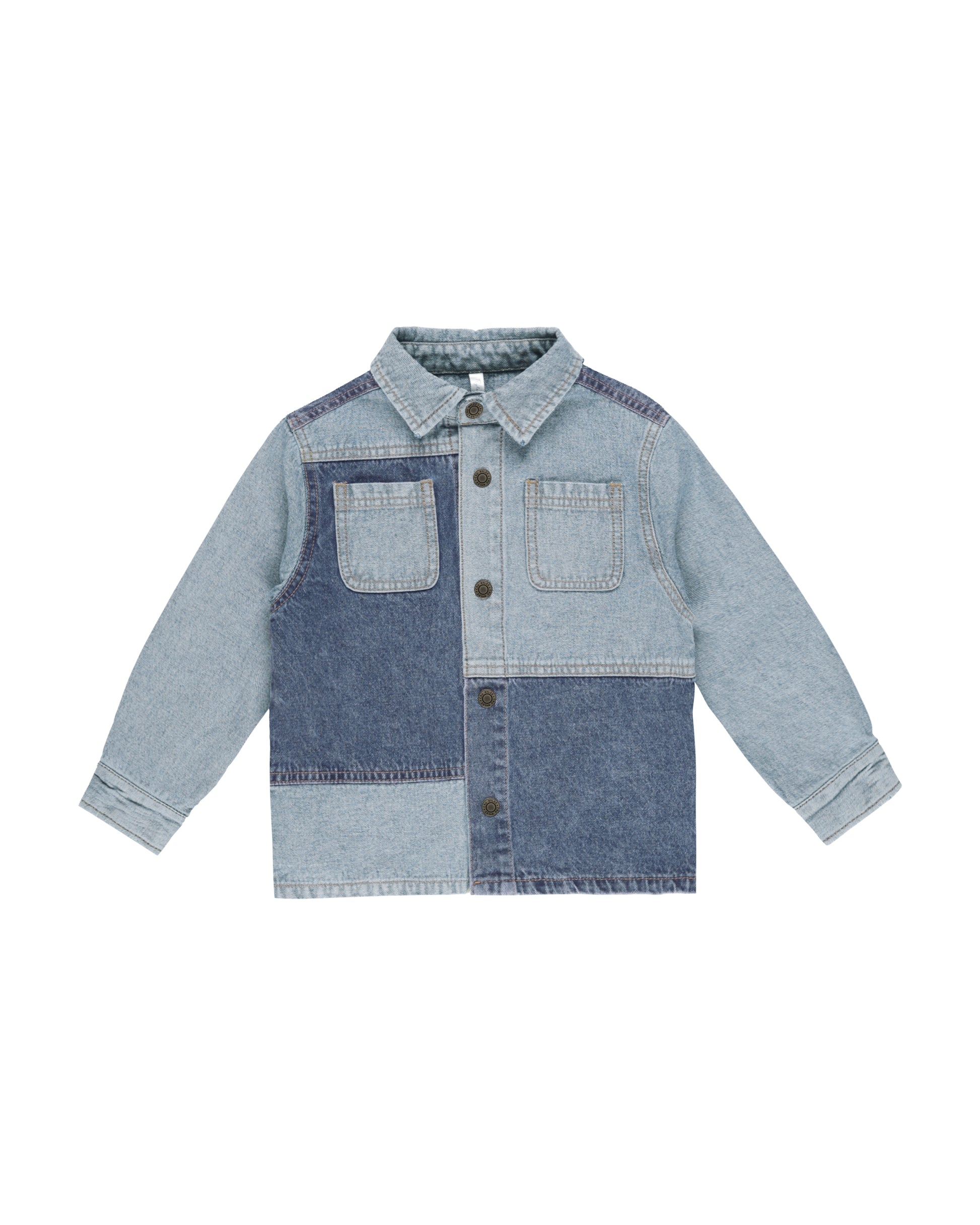 This stylish overshirt is designed to keep your little one warm and stylish with a button-up front and contrasting washed denim panels!