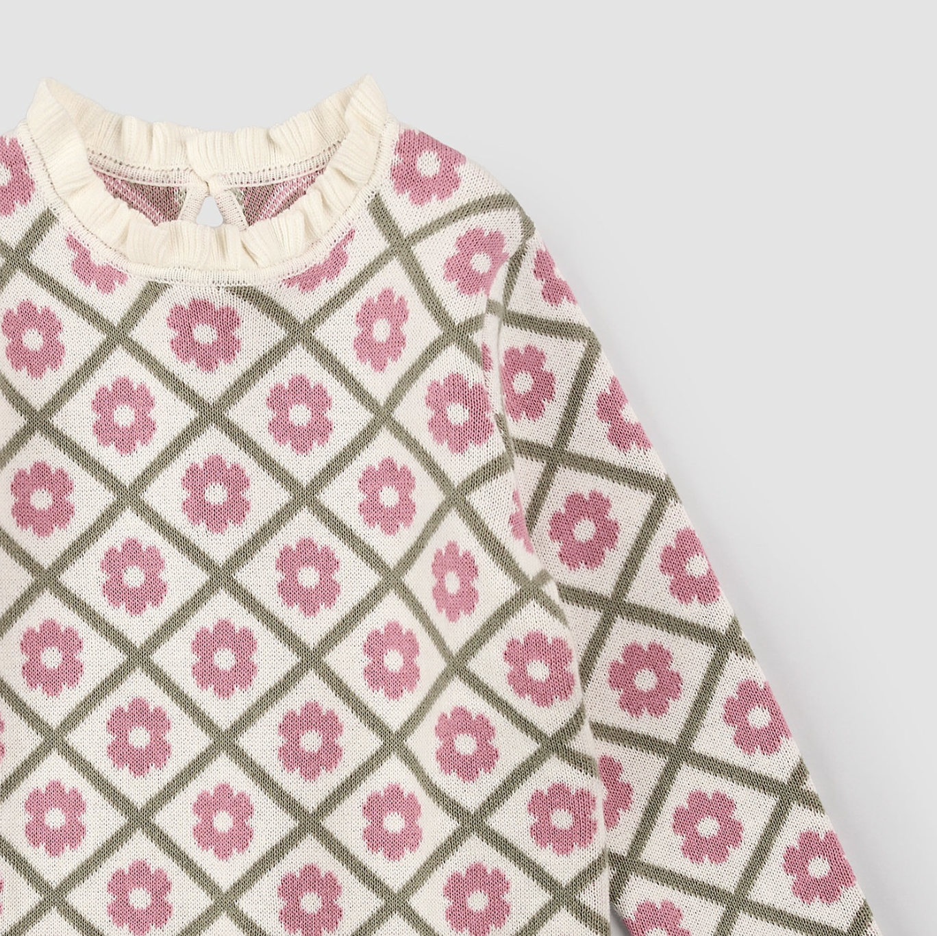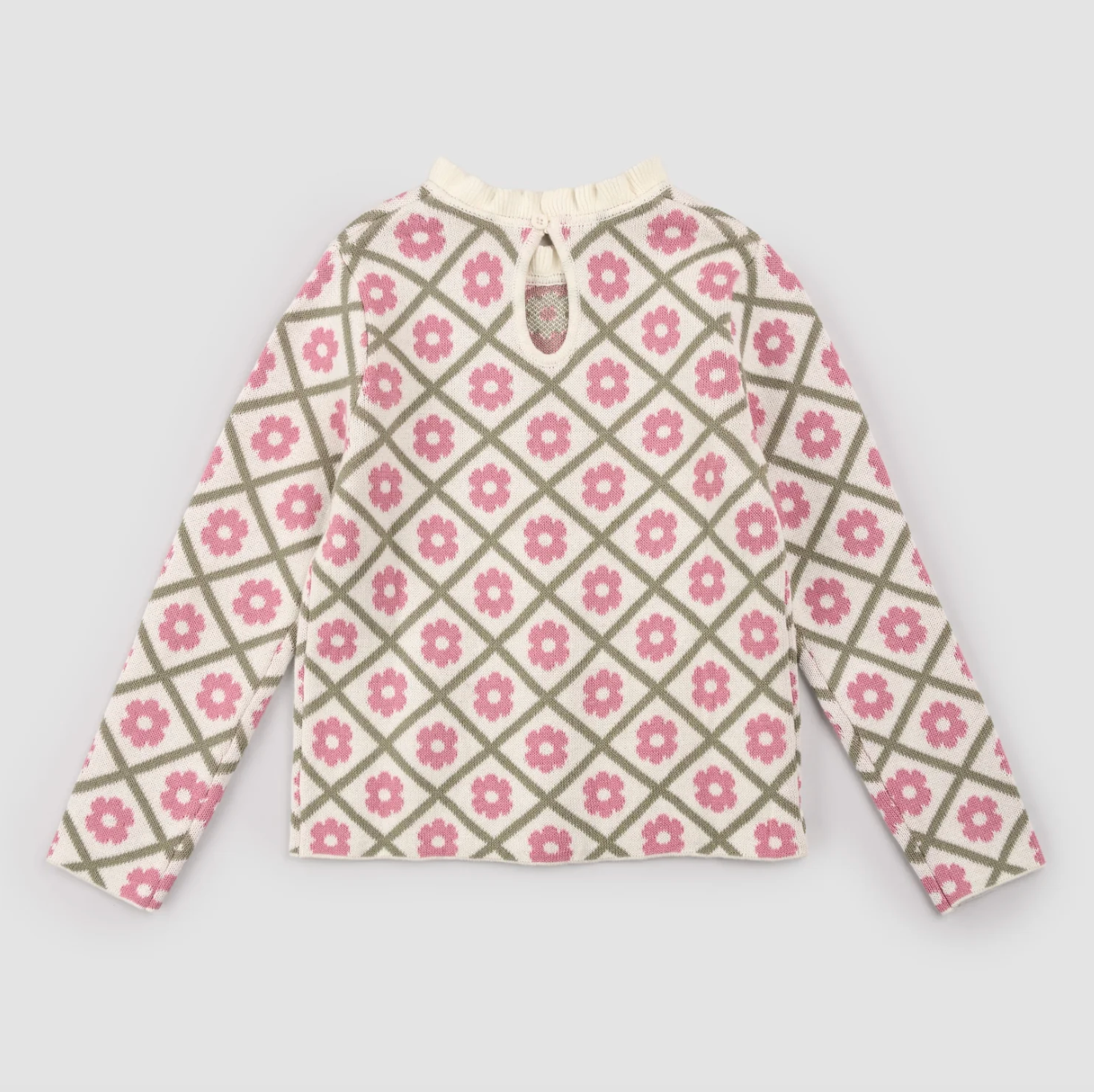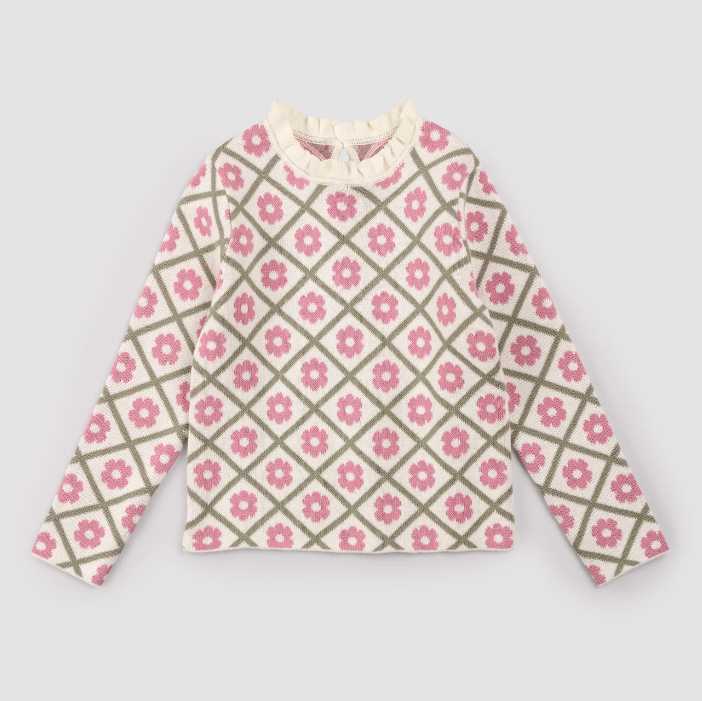 adorable sweater for the new season! bright pink flowers with a ruffle collar its everything girly & super cozy