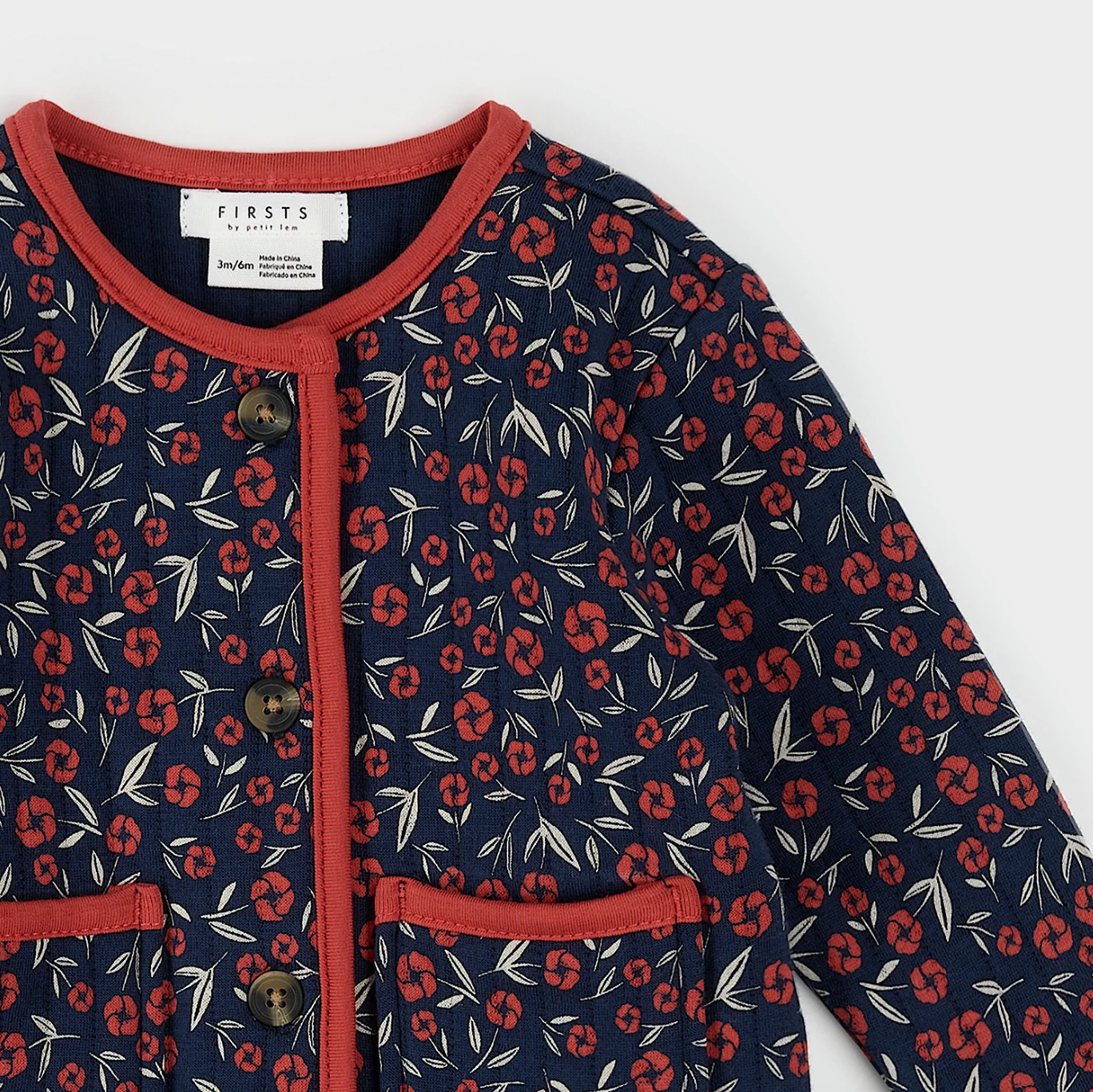 Poppy Floral Print on Dress Blue Quilted Cardigan