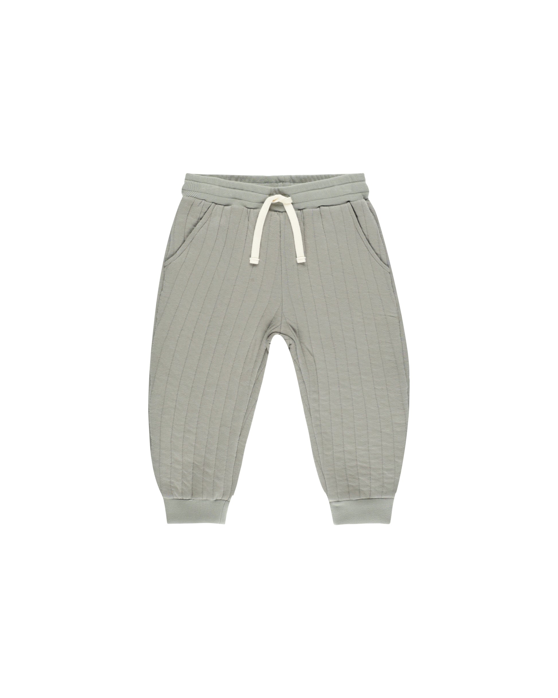 Relaxed fit pants featuring vertical stitch lines, an elastic waistline, and a natural drawstring. Includes two front pockets. Pairs perfectly with our Quilted Sweatshirt.