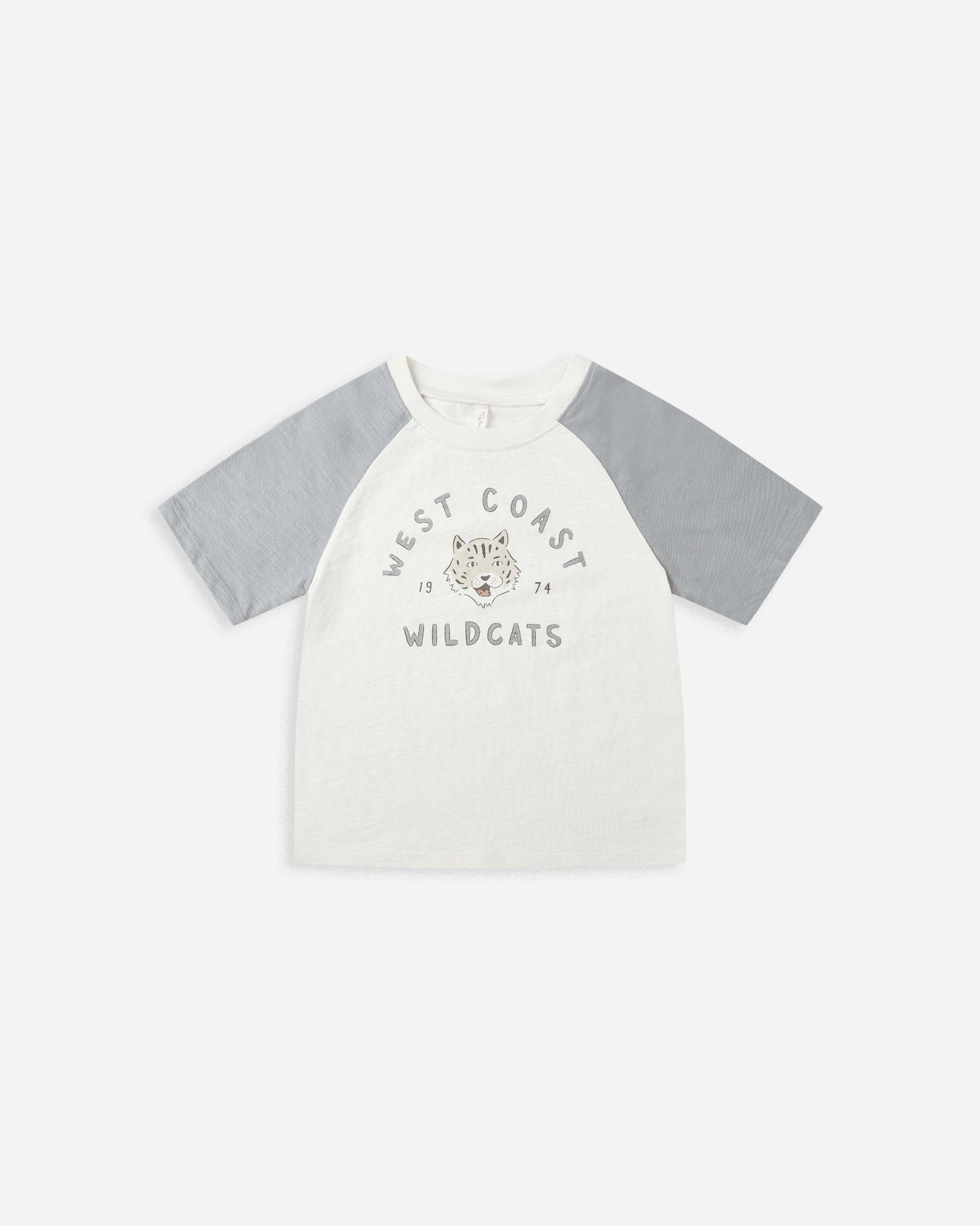 Short sleeve tee in soft cotton jersey, featuring contrast raglan sleeves for a classic athletic look.