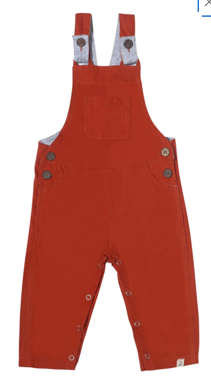 your favorite overall in the perfect rust orange that will look adorable at any pumpkin patch! buttons at the top for easy wear plus snaps between the legs for easy changing!