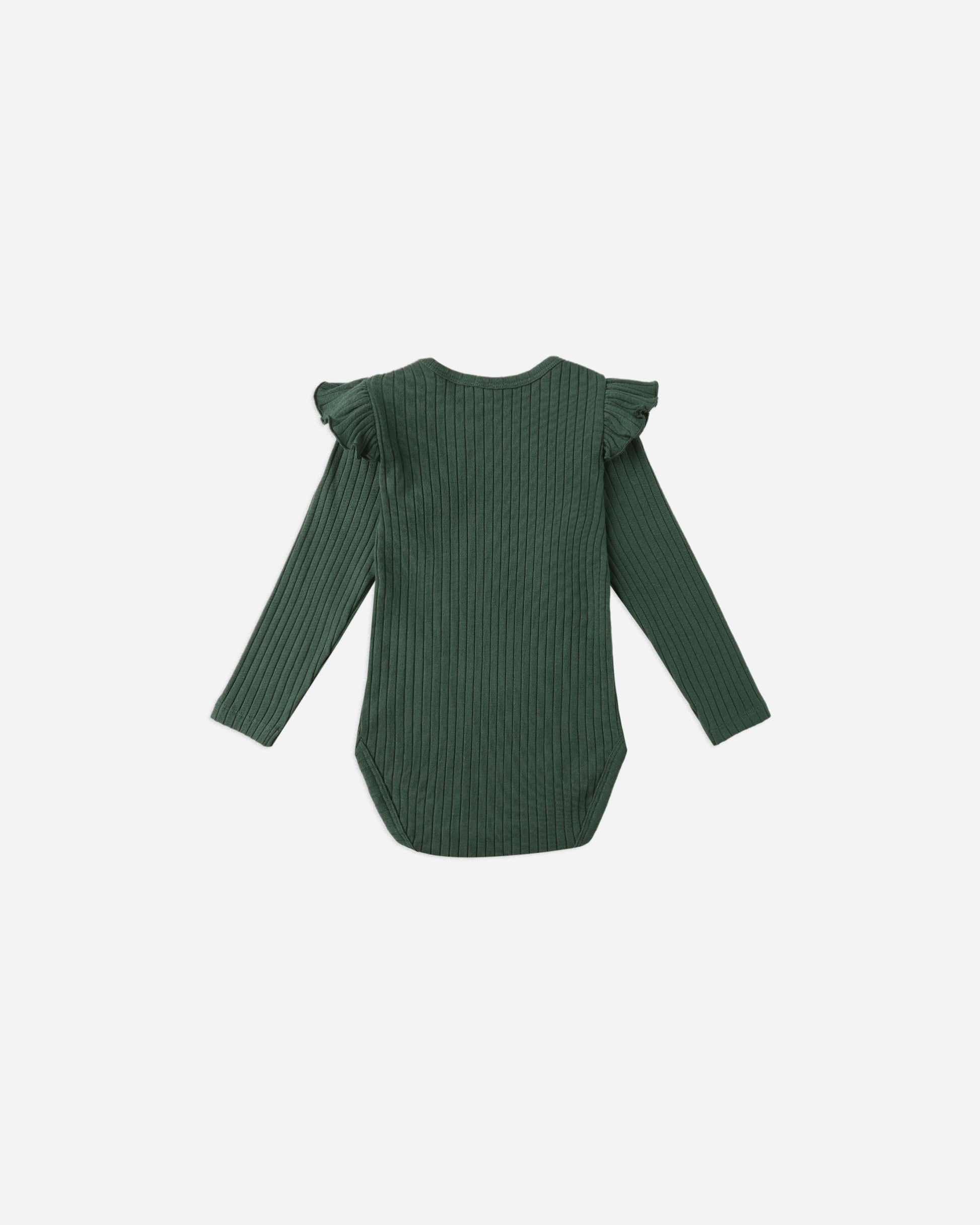 This long sleeve bodysuit is a must-have for your little gal this season! Designed with sweet shoulder ruffles and snaps at the neck and bottom for easy changes. Pair with our mini daisy overalls to complete the look.