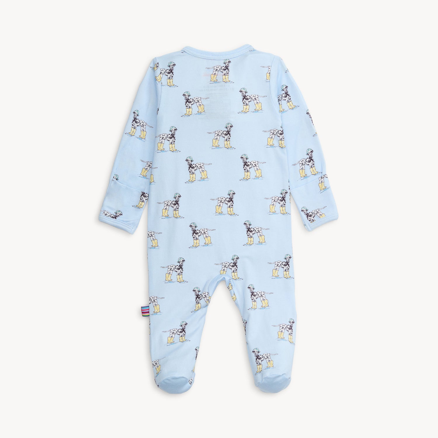 puppies & rainboots! your favorite magnetic footie in a light blue with an adorable Dalmation rainboot wearing print