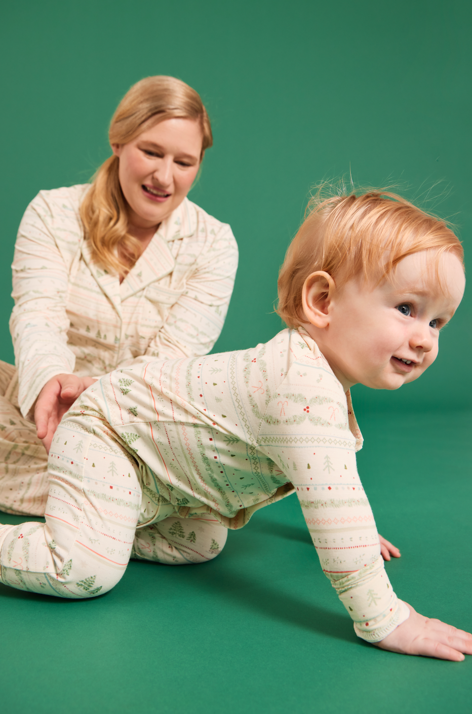 its the holiday season & this print is the perfect option for any little one! neutral colors that are soft & vintage looking for a classic holiday look!