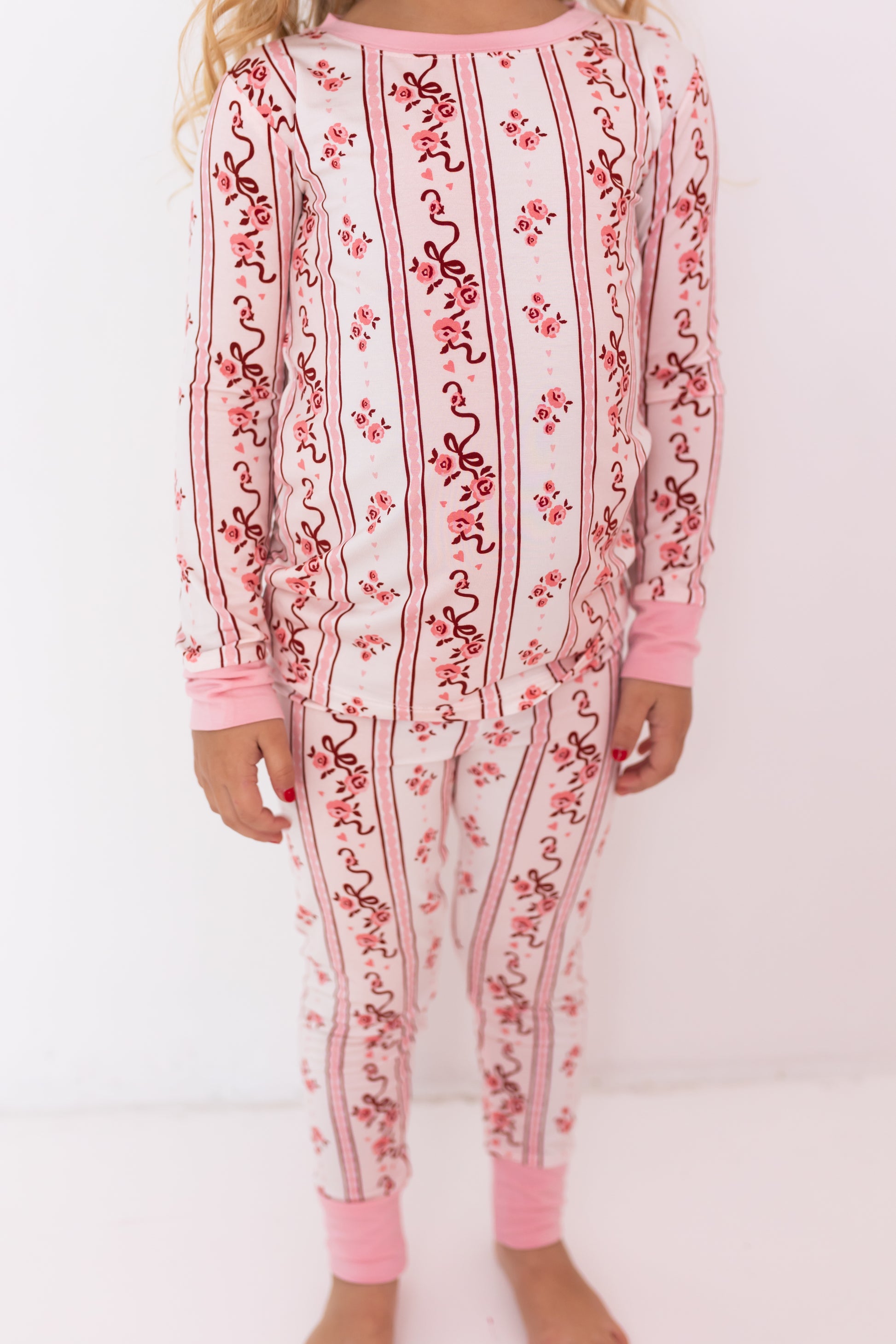 flowers and pretty pinks to celebrate the spring season! our new favorite 2 piece long sleeve bamboo pjs in the perfect print for the warmer season