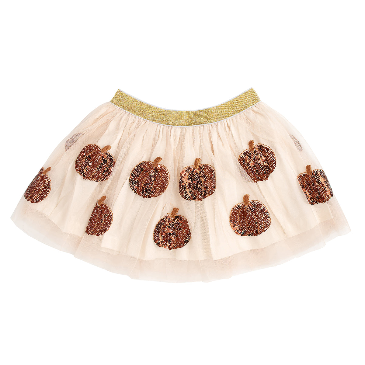 its pumpkin season!! the pumpkin tutu is of course BACK!! beige tulle tutu with orange pumpkins for added glitter! beige lining for added comfort